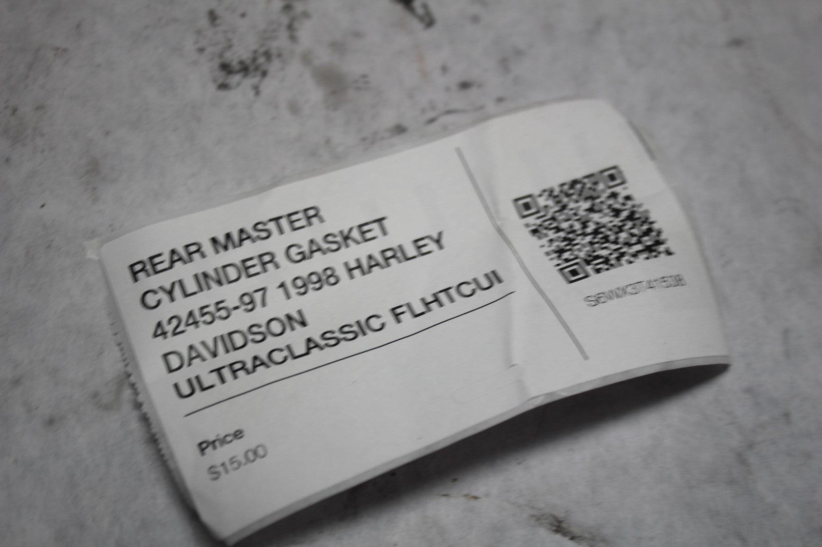 This rear master cylinder gasket (OEM 42455-97) was removed from a 1998 Harley-Davidson Ultra Classic FLHTCUI and is an original Harley-Davidson part, not an aftermarket reproduction. This gasket is used in the rear brake master cylinder assembly and is critical for maintaining proper hydraulic pressure and preventing brake fluid leaks.