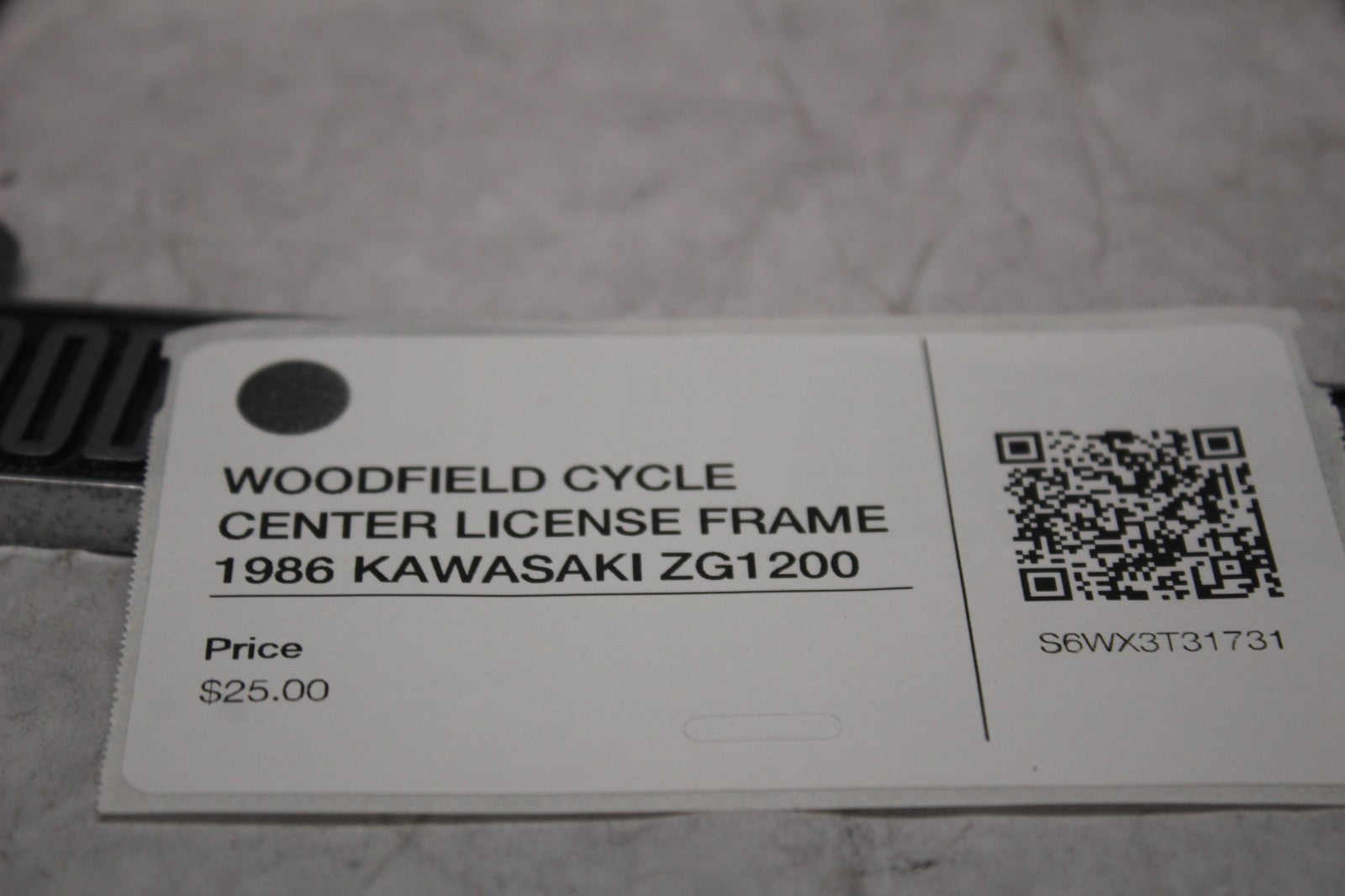 WOODFIELD CYCLE CENTER LICENSE FRAME 1986 KAWASAKI ZG1200